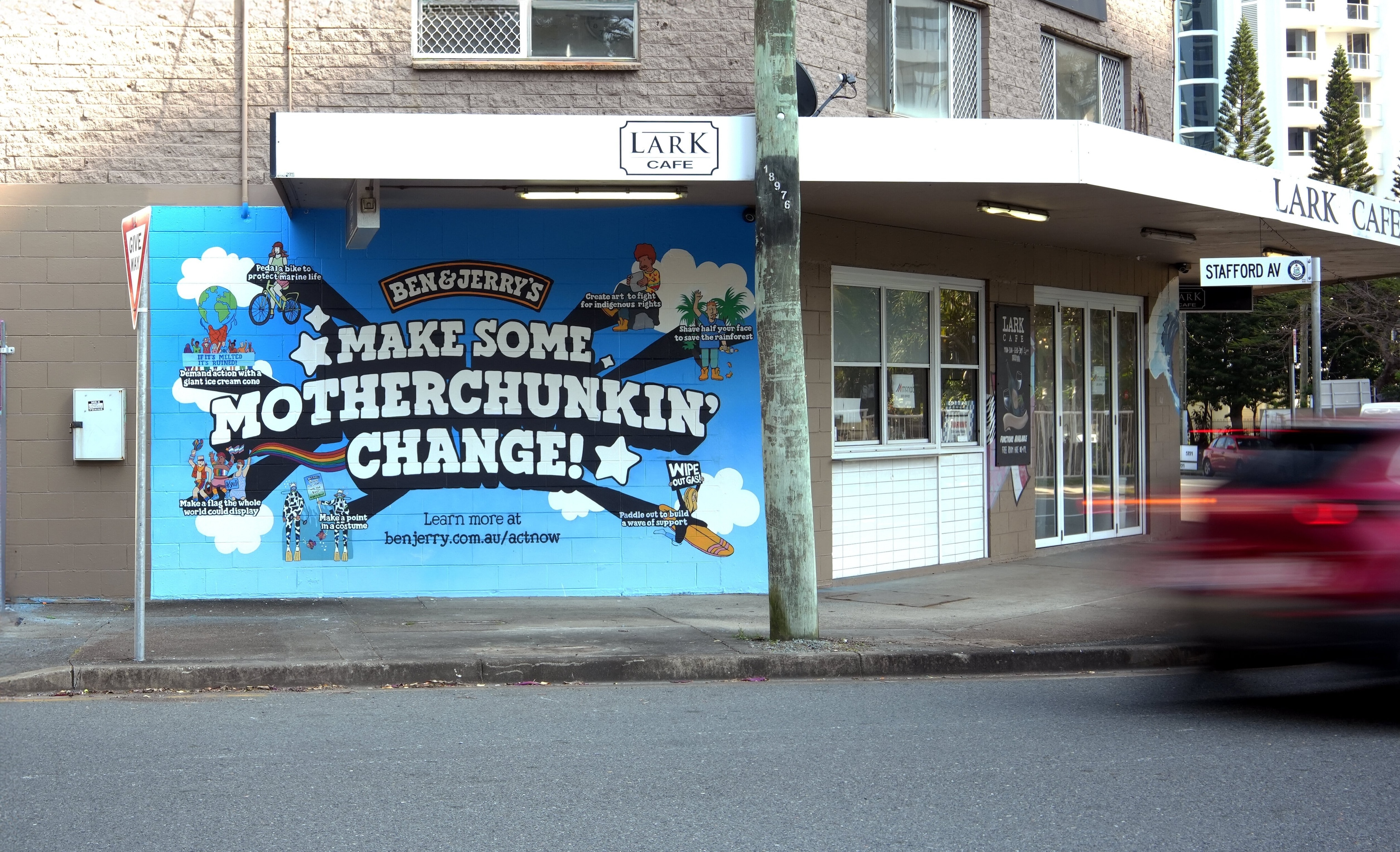 Ben & Jerry's 'Make Some Motherchunkin' Change' mural in Main Beach, Queensland